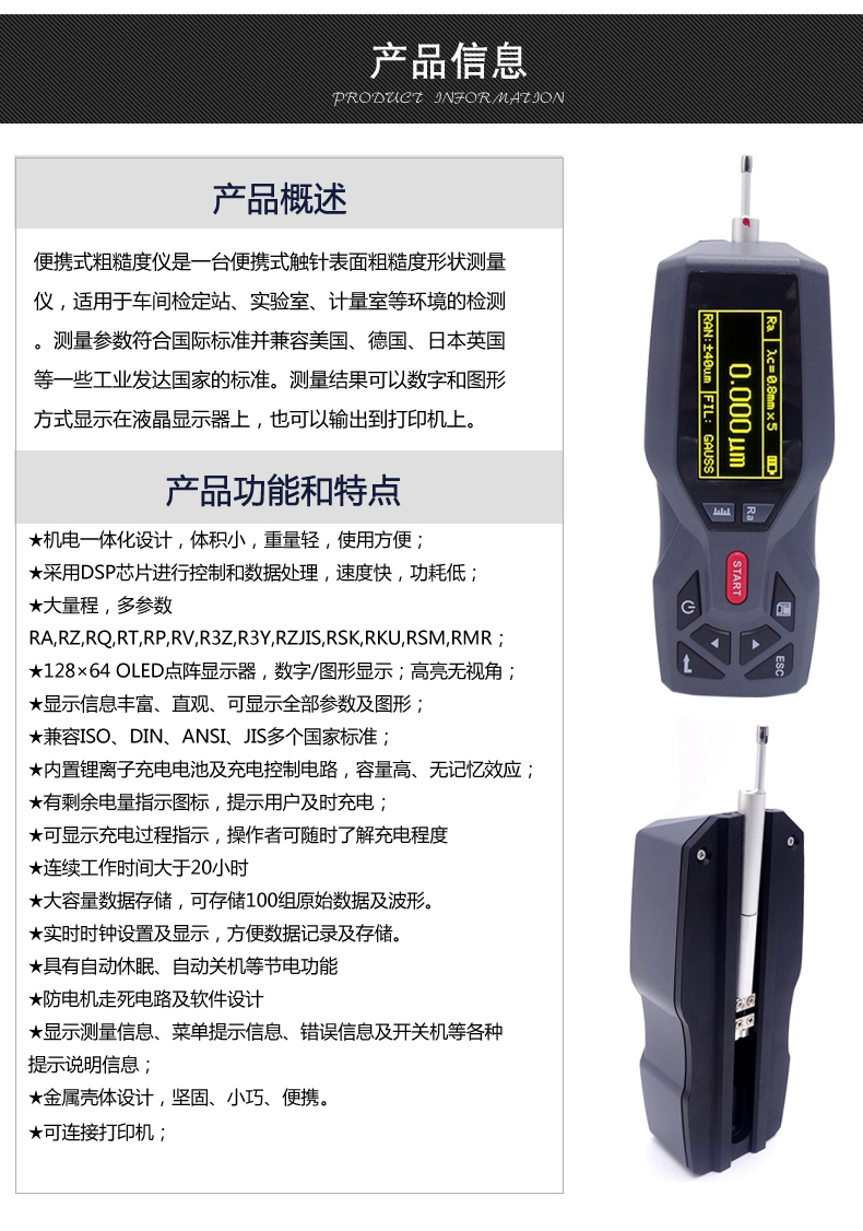 大量程,多參數(shù)Ra,Rz,Rq,Rt,Rp,Rv,R3z,R3y,RzJIS,Rsk,Rku,Rsm,Rmr;