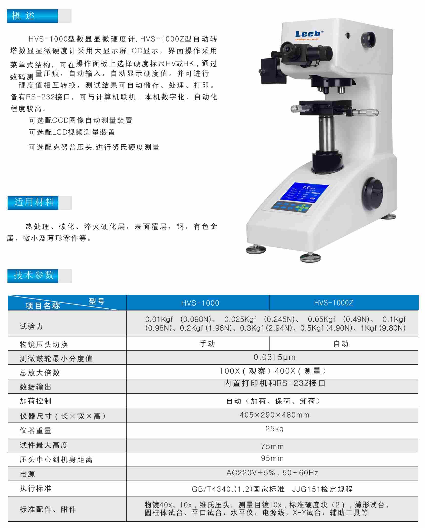 HVS-1000型數(shù)顯顯微硬度計,HVS-1000Z型自動轉(zhuǎn)塔數(shù)顯顯微硬度計采用大顯示屏LCD顯示,界面操作采用菜單式結(jié)構(gòu),可在操作面板上選擇硬度標(biāo)尺HV或HK,通過數(shù)碼測量壓痕,自動輸入,自動顯示硬度值。